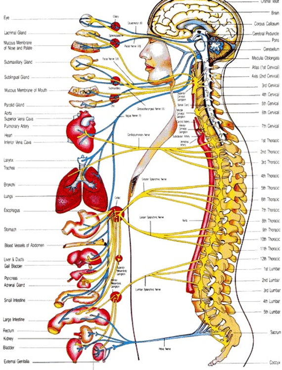 The brain, spinal cord and spinal nerves are similar to electrical wires that run in your home to your lighting and your appliances. The spinal column is similar to the circuit breaker in your home. When a circuit breaker switches off it is similar to a vertebral subluxation, an alteration in its bony alignment. Someone can manually flick the switch off which would be similar to a physical injury that may misalign your vertebral column. In this case you have somato-somatic reflex where joint misalignment causes pain somewhere in the body. The injury may also cause a somato-visceral reflex where the physical misalignment of the joint disrupts the nerve function to a organ or gland. In both cases manually returning the joint to its correct position will solve problem. This is often called a chiropractic adjustment. The common reason the circuit breaker triggers it usually a overload or short circuit somewhere. You can go out and flip the switch back on but unless the cause of the short-circuit is fixed like a faulty socket or appliance it’ll keepswitching off. For the vertebral circuit breaker it is known as a visceral-somatic relex. In this case the faulty organ or gland must be addressed otherwise the vertebrae associated with this tissue will keep subluxating. A subluxation can be triggered by stress. This is known as a psycho-somatic reflex or psycho-visceral reflex. Easily corrected by the Net Mind Body Technique.